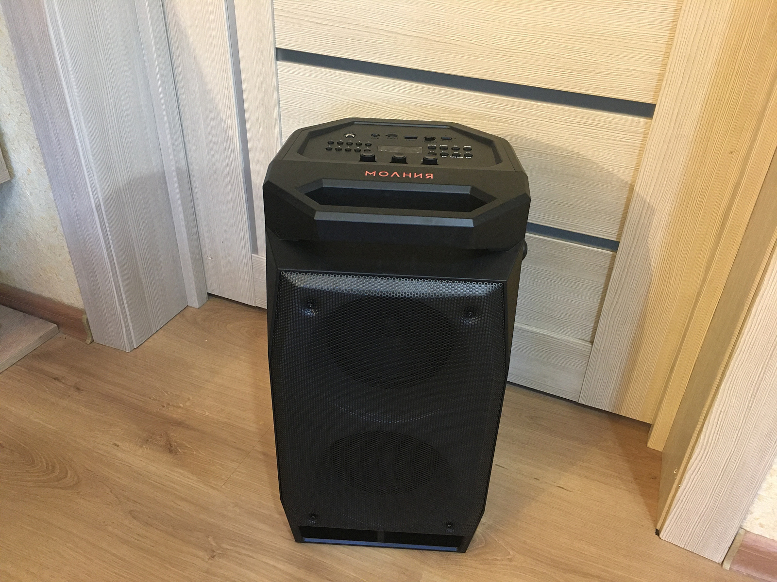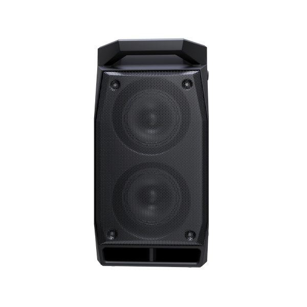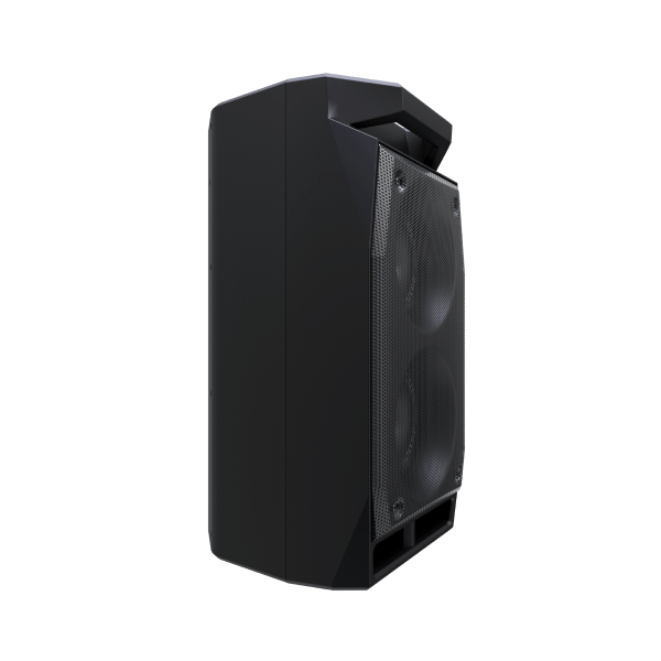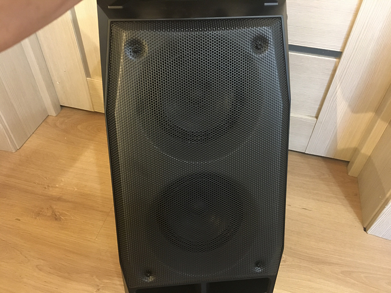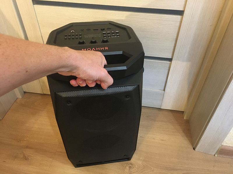 Колонка имеет довольно не большие размеры и весит около 4,5 кг, но благодаря удобной ручке сверху спереди она легко переносится. Также колонку можно поставить не только вертикально, но и горизонтально благодаря боковым ножкам. В горизонтальном положении она занимает меньше места.